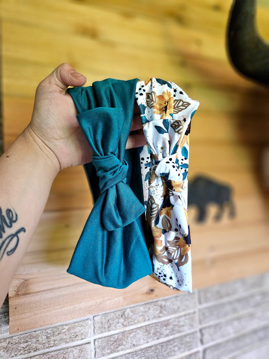Cross & Blue Floral Faux Bow Headband